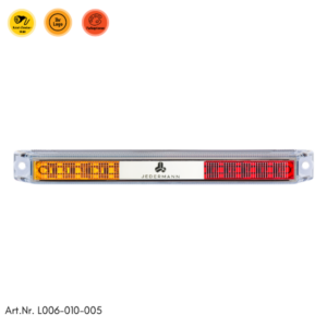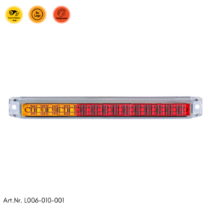 Die lineare Bauform sorgt für eine klare und gut erkennbare Signalwirkung und unterstützt die sichere Wahrnehmung des Fahrzeugs auch bei schwierigen Wetterbedingungen. Die Leuchte ist wahlweise durchgehend leuchtend oder mit einer Mittelkappe in verschiedenen Farben erhältlich. Auf Wunsch kann die Mittelkappe zudem mit einem individuellen Logo gelasert werden.