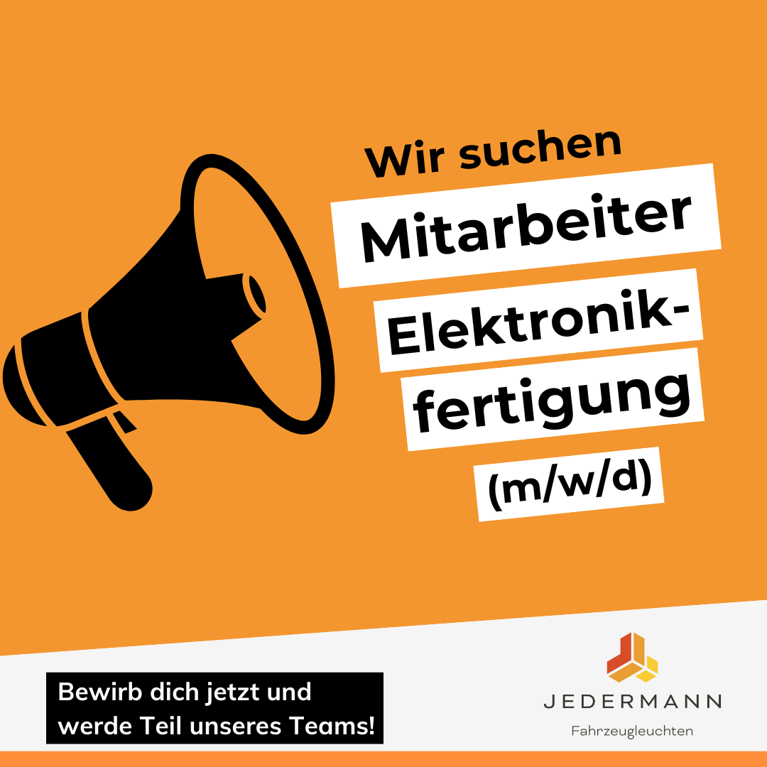 Die Jedermann AG ist ein Familienunternehmen in der dritten Generation und seit über 50 Jahren auf Fahrzeugbeleuchtung spezialisiert. Zur Verstärkung unseres Teams suchen wir ab sofort einen technisch versierten Mitarbeiter (m/w/d), der unsere Elektronikfertigung unterstützt und insbesondere an unserer SMD-Bestückungslinie arbeitet.